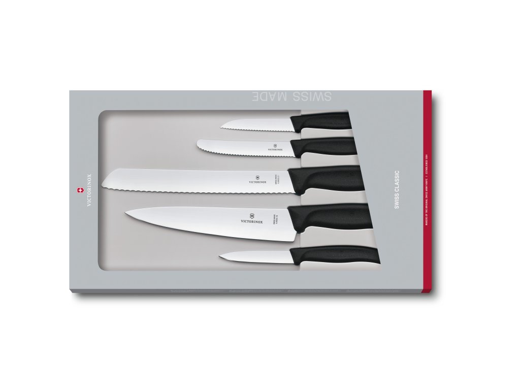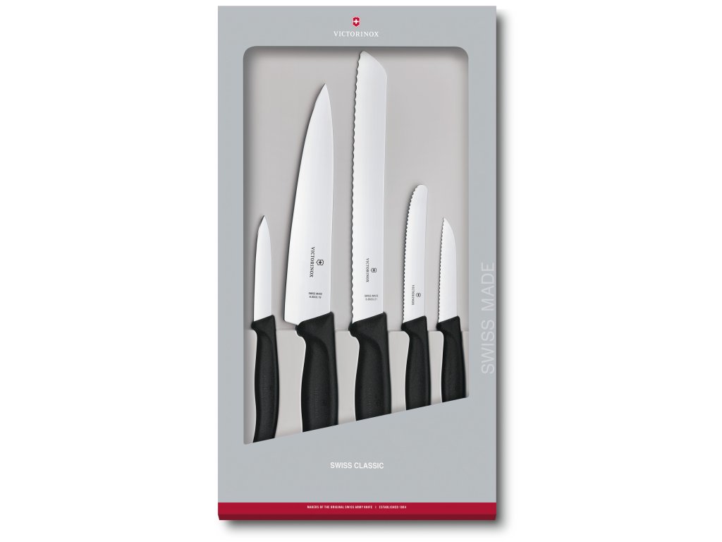 Objevte kvalitu švýcarské značky Victorinox v praktické sadě 5 kuchyňských nožů s ergonomickými plastovými rukojeťmi pro pohodlné a bezpečné použití. Ideální pro každou domácnost i profesionální kuchyni.