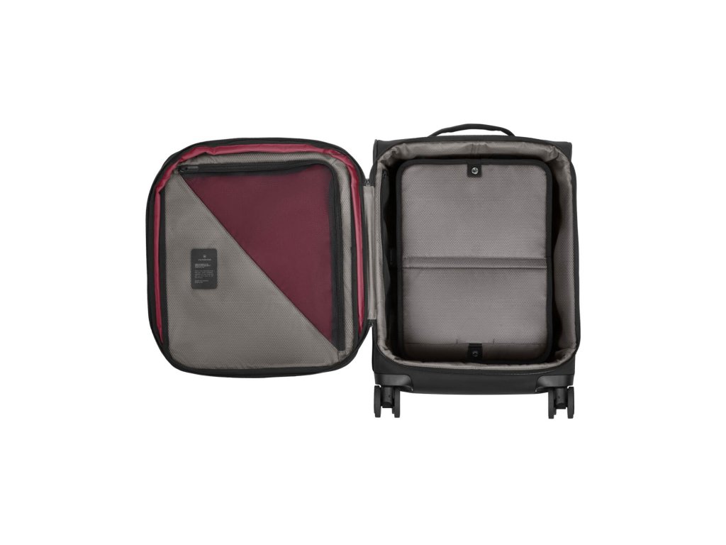 Lehký kabinový kufr Crosslight Global Softside Carry-on s přehledem naplní náročná očekávání každého, kdo je často na cestách a vyžaduje perfektně zorganizované zavazadlo. Kolekce Crosslight je splněným závazkem vůči planetě a životnímu prostředí, zároveň je i potvrzením výjimečnosti švýcarského inženýrství. Na výrobu textilního materiálu každého kousku z této kolekce byly použity převážně recyklované PET lahve. Kolekci spojuje nízká hmotnost, snadná manipulovatelnost a celá řada funkcí, které poskytují všestrannost a praktičnost. Vnitřní prostor je vybaven speciální podšívkou ošetřenou antimikrobiální technologií Silvadur™, která zabraňuje růstu mikroorganismů a vzniku nežádoucích pachů, a současně chrání vlákna před nečistotami a opotřebením. Lehkost a funkčnost jsou v harmonické rovnováze, proto kolekce snadno udrží krok s různými životními styly.