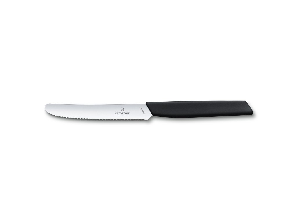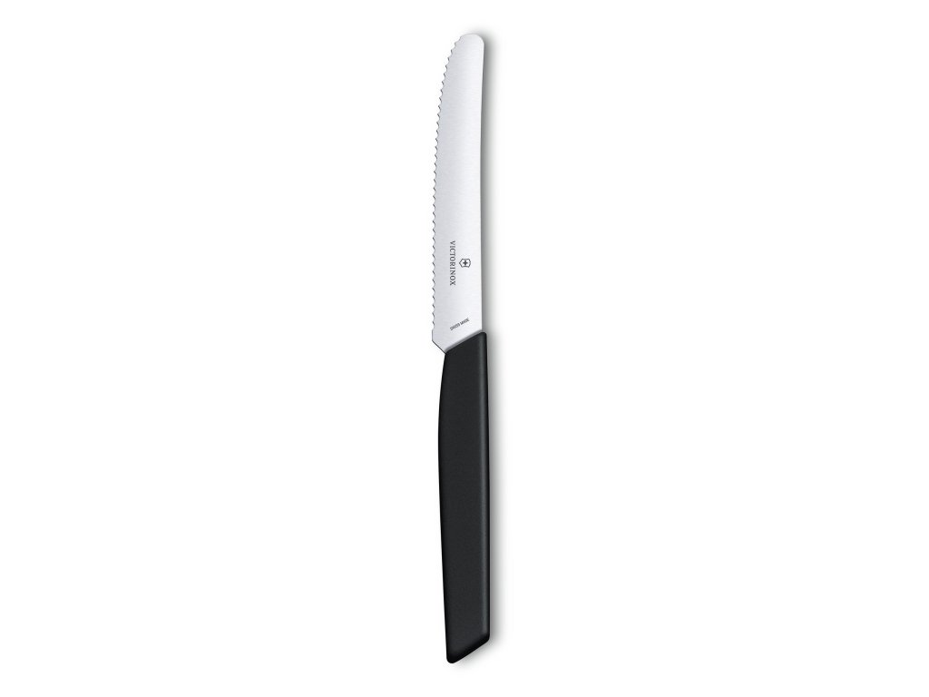 Kuchyňské nože s kratší čepelí využijete při činnostech vyžadujících přesnost, např. při zpracování ovoce, zeleniny apod. Tento kuchyňský nůž je obzvlášť vhodný na krájení rajčat či ovoce a zeleniny s pevnější slupkou. Lze jej rovněž využít jako součást stolního příboru s lžíci a vidličkou.
