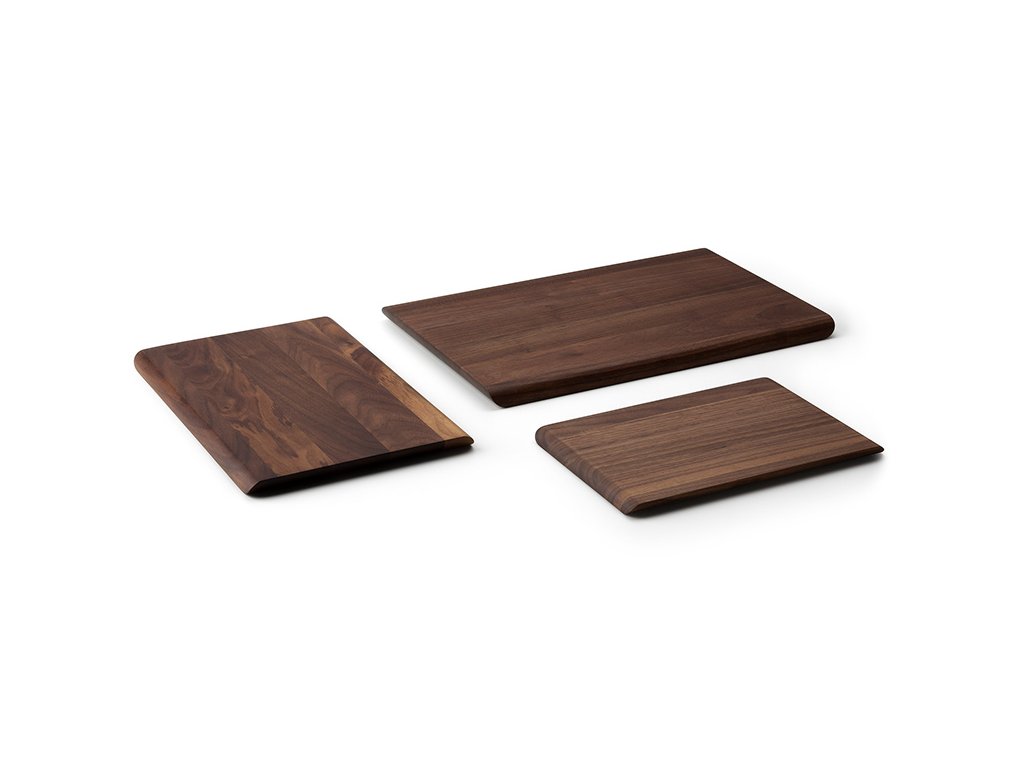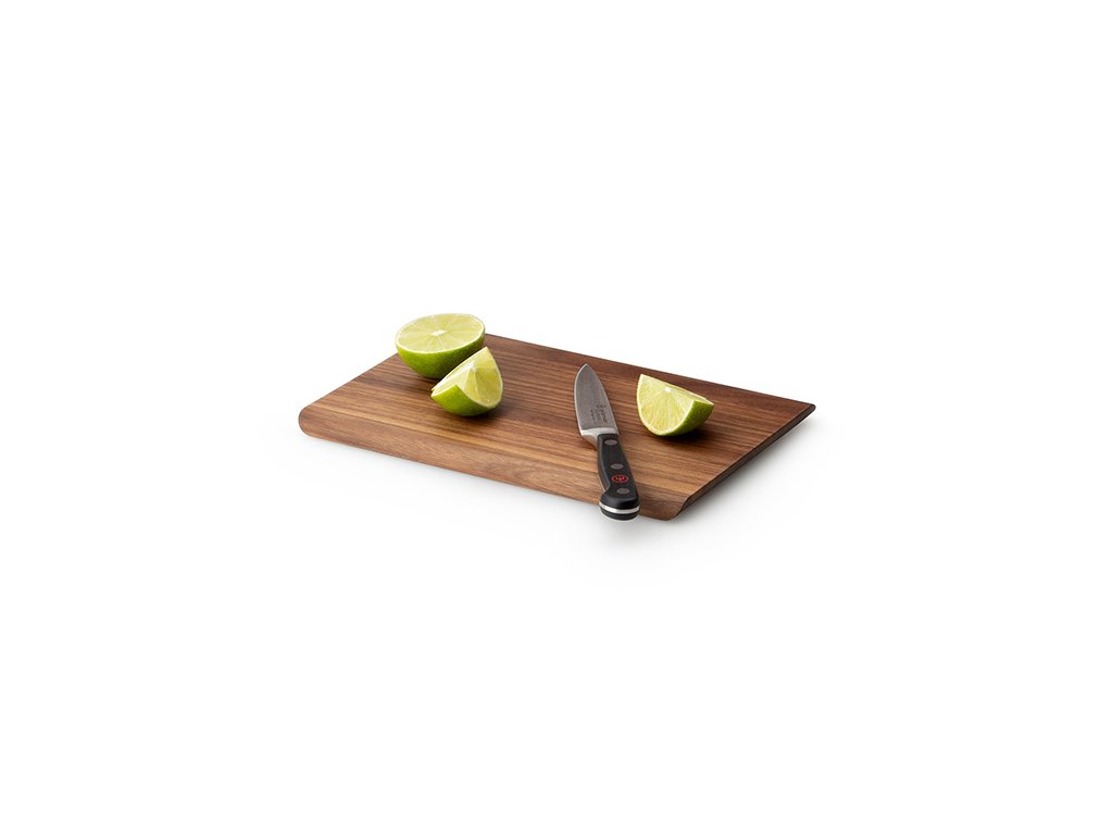 Krájecí prkénko z obzvláště tvrdého a vznešeného, masivního ořechového dřeva s krásnou strukturou a přírodním zbarvením. Každý kus je jedinečný. Zajímavě řešené kratší hrany desky s efektním zkosením.