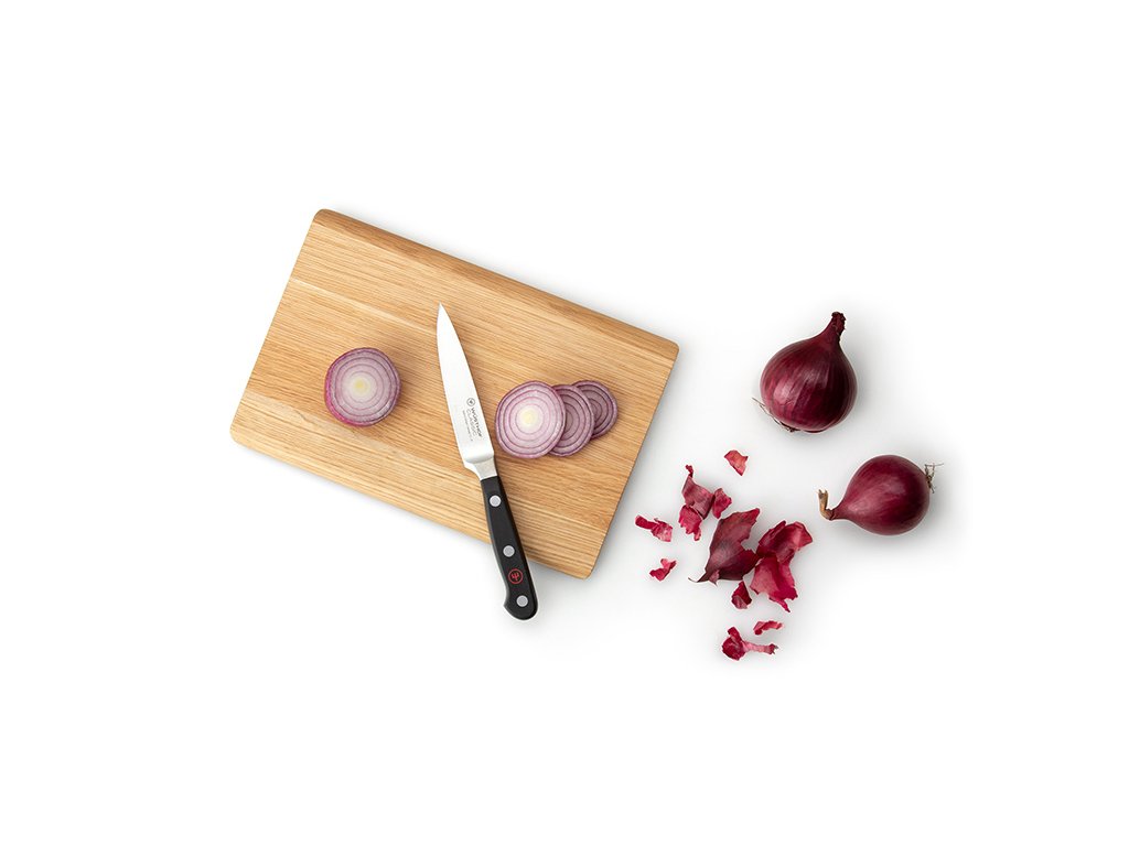 Krájecí prkénko z obzvláště tvrdého a vznešeného, masivního dubového dřeva s krásnou strukturou a přírodním zbarvením. Každý kus je jedinečný. Zajímavě řešené kratší hrany desky s efektním zkosením.