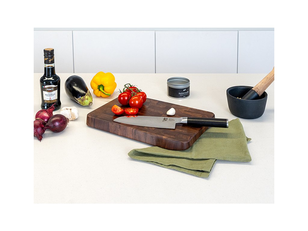 Prkénko na krájení Continenta Endgrain z ořešáku vyniká mozaikovou konstrukcí z lepených kostek dřeva, které zajišťují vysokou odolnost povrchu. Silné masivní provedení doplňuje spodní zkosení pro snadné uchopení. Rozměry: 32,5 × 21,5 × 3 cm.