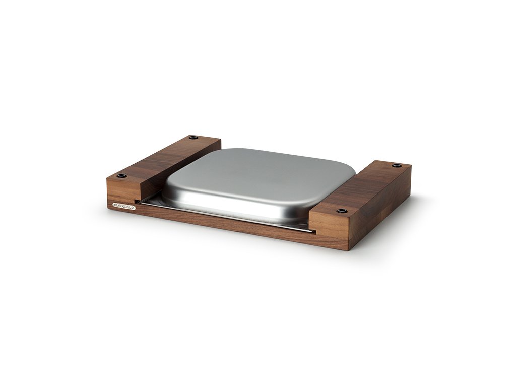 Krájecí deska z kvalitního tvrdého dřeva s nerezovou zásuvkou.