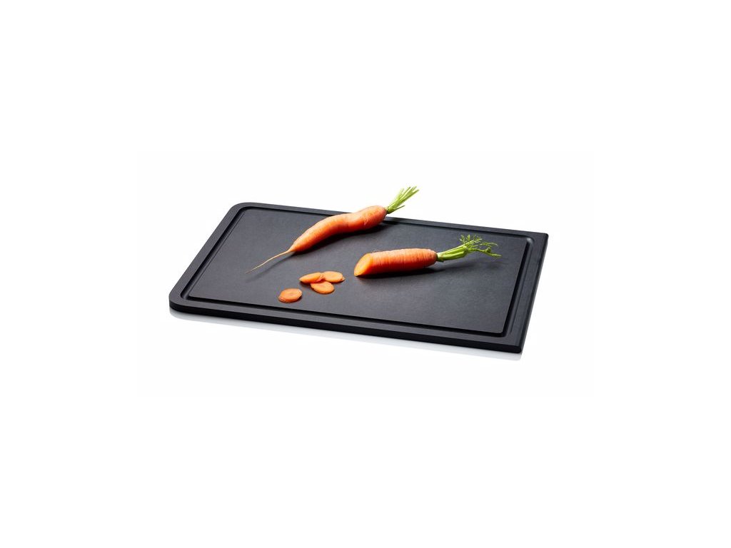 Stylové prkénko klasického obdélníkového tvaru je vyrobeno z udržitelného recyklovaného materiálu Duracore. Lisované, vysoce odolné dřevopapírové vlákno v sobě spojuje všechny vhodné vlastnosti: je extrémně pružné, žáruvzdorné až do 180 °C a vhodné do myčky nádobí. Zároveň je velmi šetrné k nožům a obzvláště hygienické. Je to ideální materiál pro prkénko na krájení. Prkénko je vybaveno praktickou drážkou, která zabraňuje tekutinám přetéct z krájecí desky na pracovní plochu. Díky stylovému modernímu designu se hodí i pro servírování přímo na stůl.