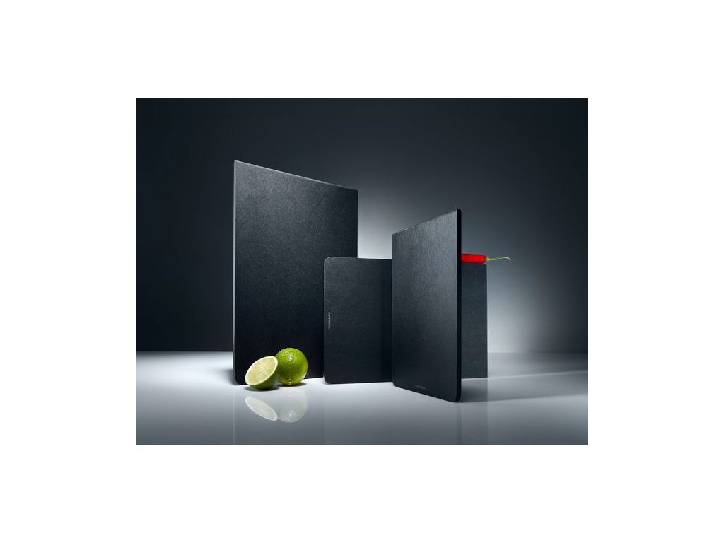 Stylové prkénko klasického obdélníkového tvaru je vyrobeno z udržitelného recyklovaného materiálu Duracore. Lisované, vysoce odolné dřevopapírové vlákno v sobě spojuje všechny vhodné vlastnosti: je extrémně pružné, žáruvzdorné až do 180 °C a vhodné do myčky nádobí. Zároveň je velmi šetrné k nožům a obzvláště hygienické. Je to ideální materiál pro prkénko na krájení. Díky stylovému modernímu designu se hodí i pro servírování přímo na stůl.