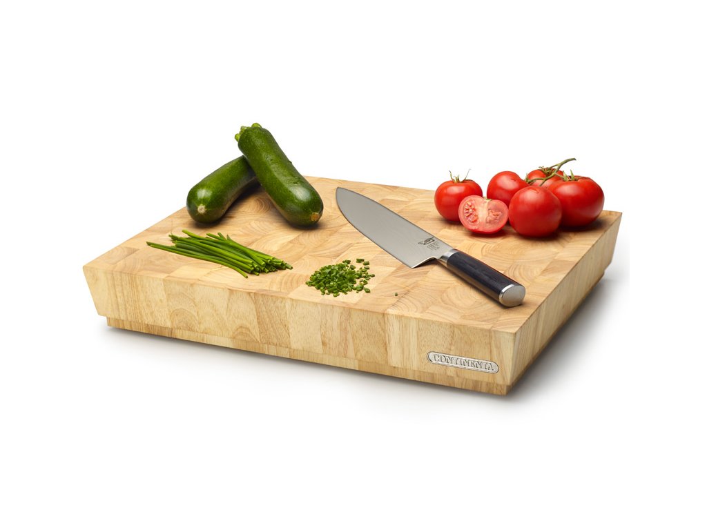 Krájecí prkénko z kvalitního tvrdého dřeva s protiskluzovými gumovými nožičkami pro bezpečné stání.