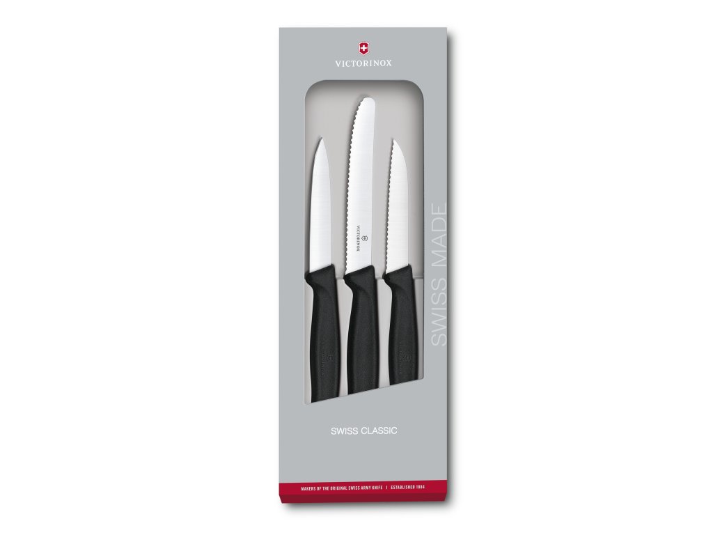 Sada tří kusů nožů na zeleninu představuje optimální kombinaci pro využití v každé kuchyni pro zpracování ovoce a zeleniny. Nože jsou ergonomicky vyvážené, jejich rukojeti padnou pohodlně do ruky. Čepele jsou tenké a ostré, takže povrch řezu bude pokaždé hladký a úhledný.