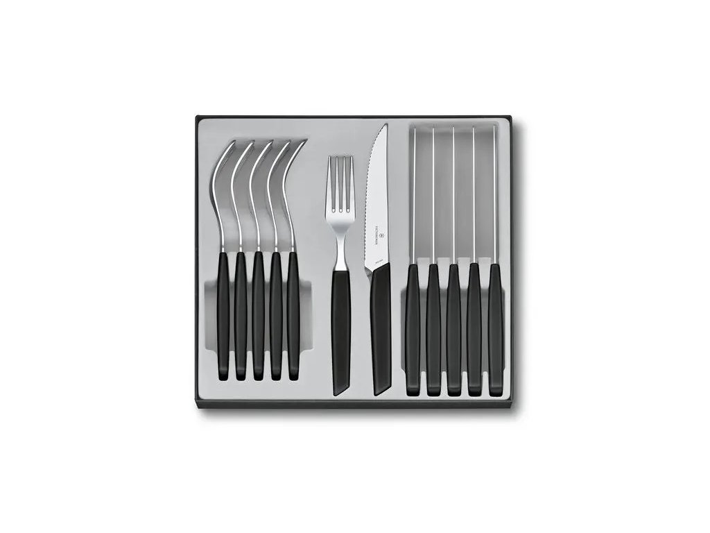 Sada příborů s nožem steakovým Swiss Modern 12 ks černá