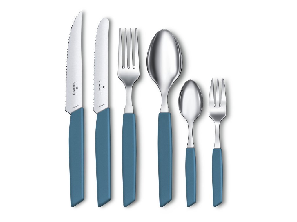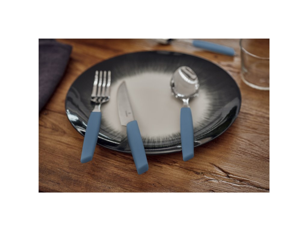 Sada příborů s nožem steakovým Swiss Modern 24 ks modrá