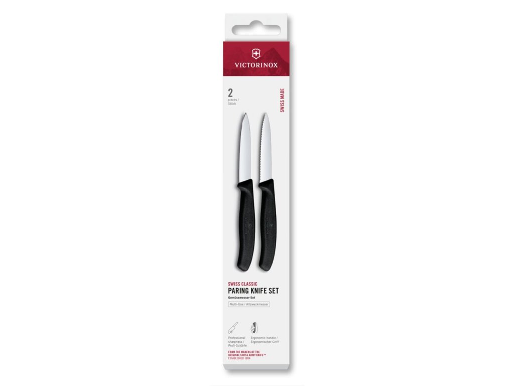 Swiss Classic, paring knife set, 2pcs, 8cm, straight/wavy, pointed tip, black, box