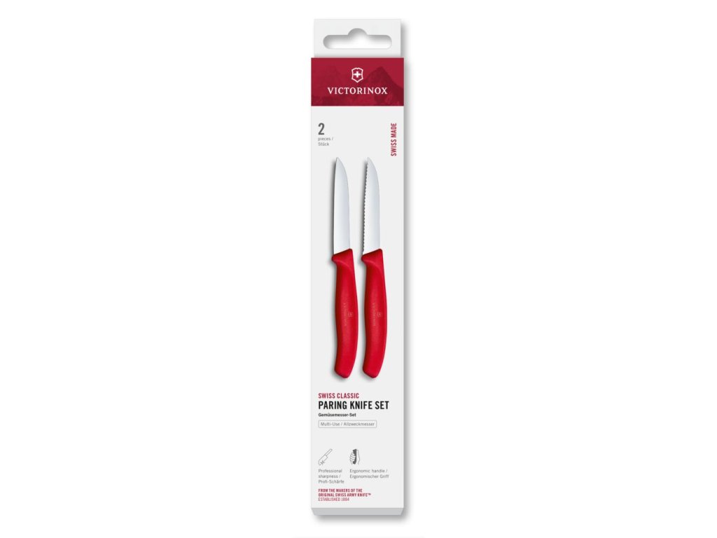Swiss Classic, paring knife set, 2pcs, 8cm,straight/wavy,red,box