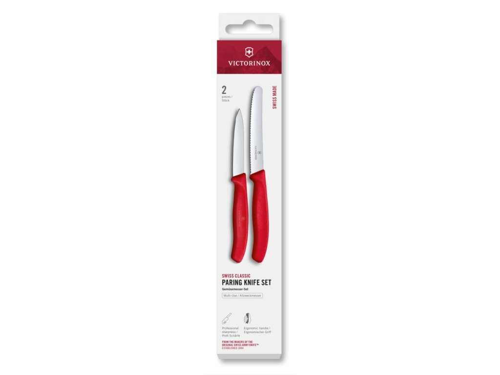 Swiss Classic, paring knife set, 2pcs, straight/wavy, red, box