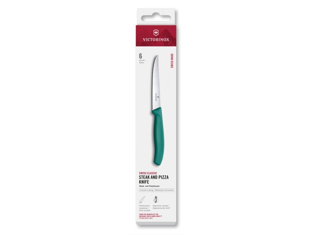 Swiss Classic, steak & pizza knife, 6pcs, 11cm, wavy, green, box